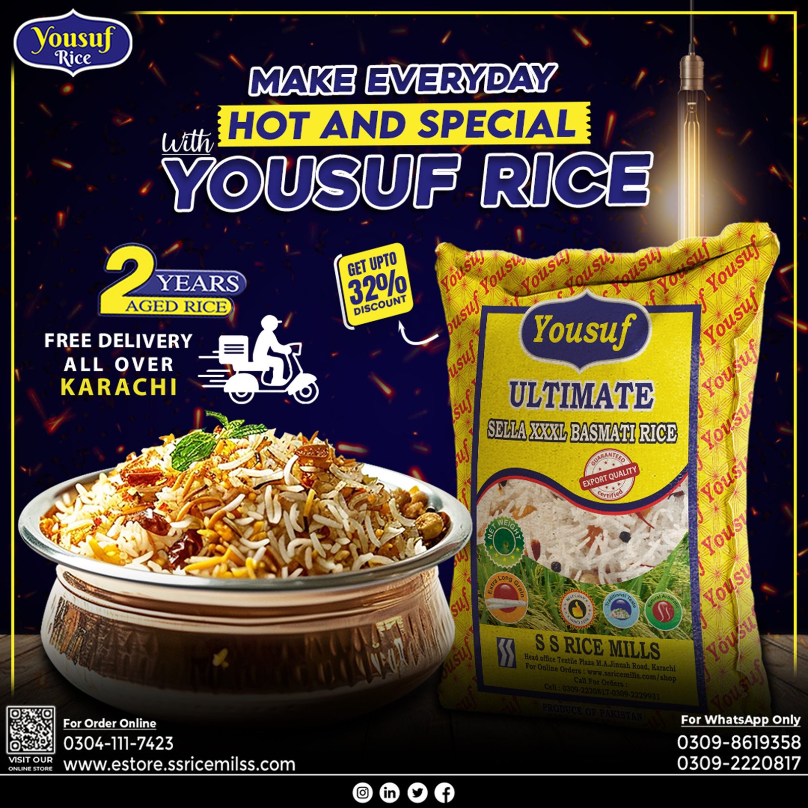 Yousuf Ultimate Sella XXXL Basmati Rice is the epitome of premium extra-long grain Sella basmati rice. Experience grains that elongate to twice their size upon cooking, remaining separate and intact. Ideal for creating large quantities of Biryani, Zarda, and Pulao.